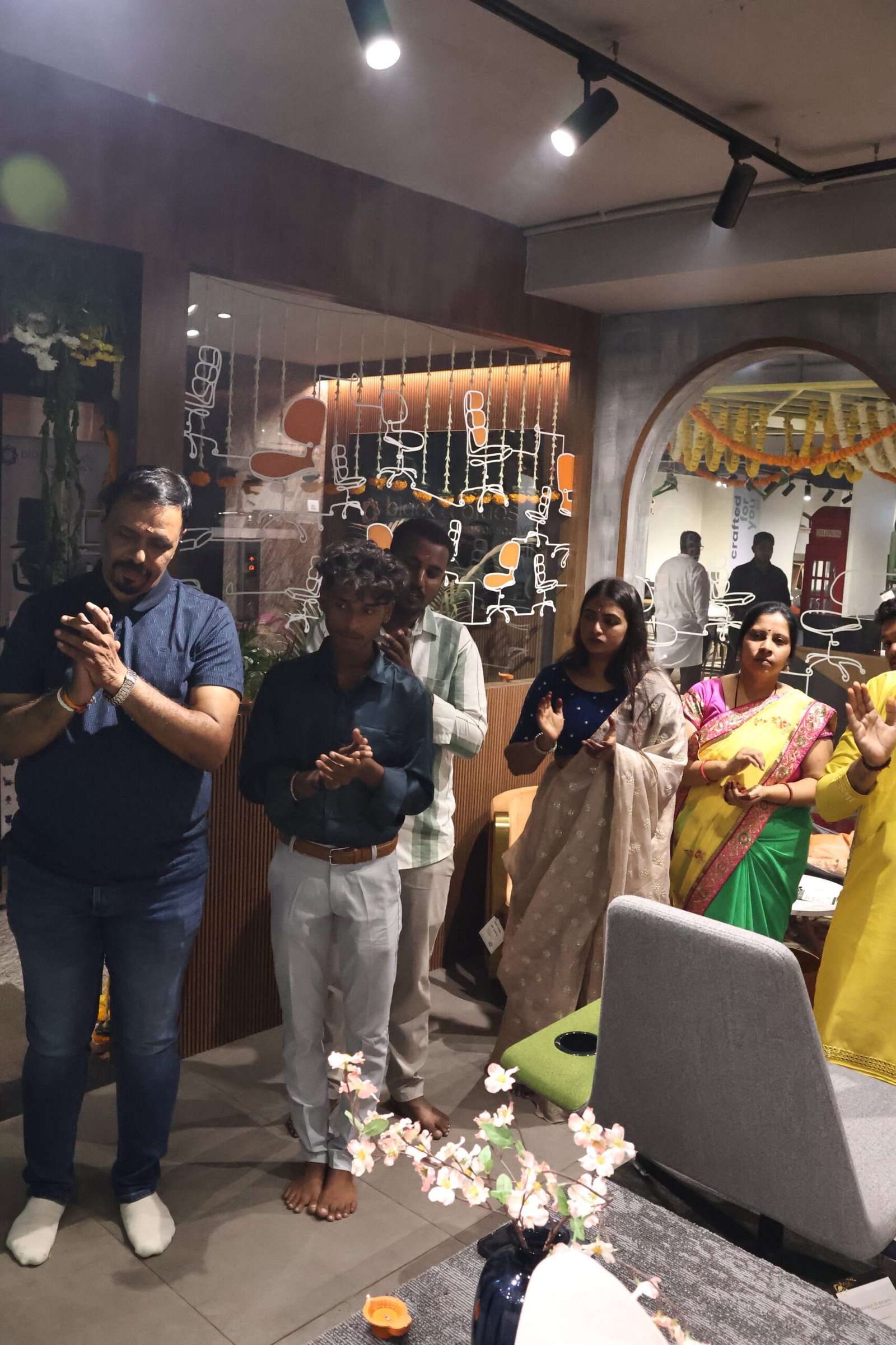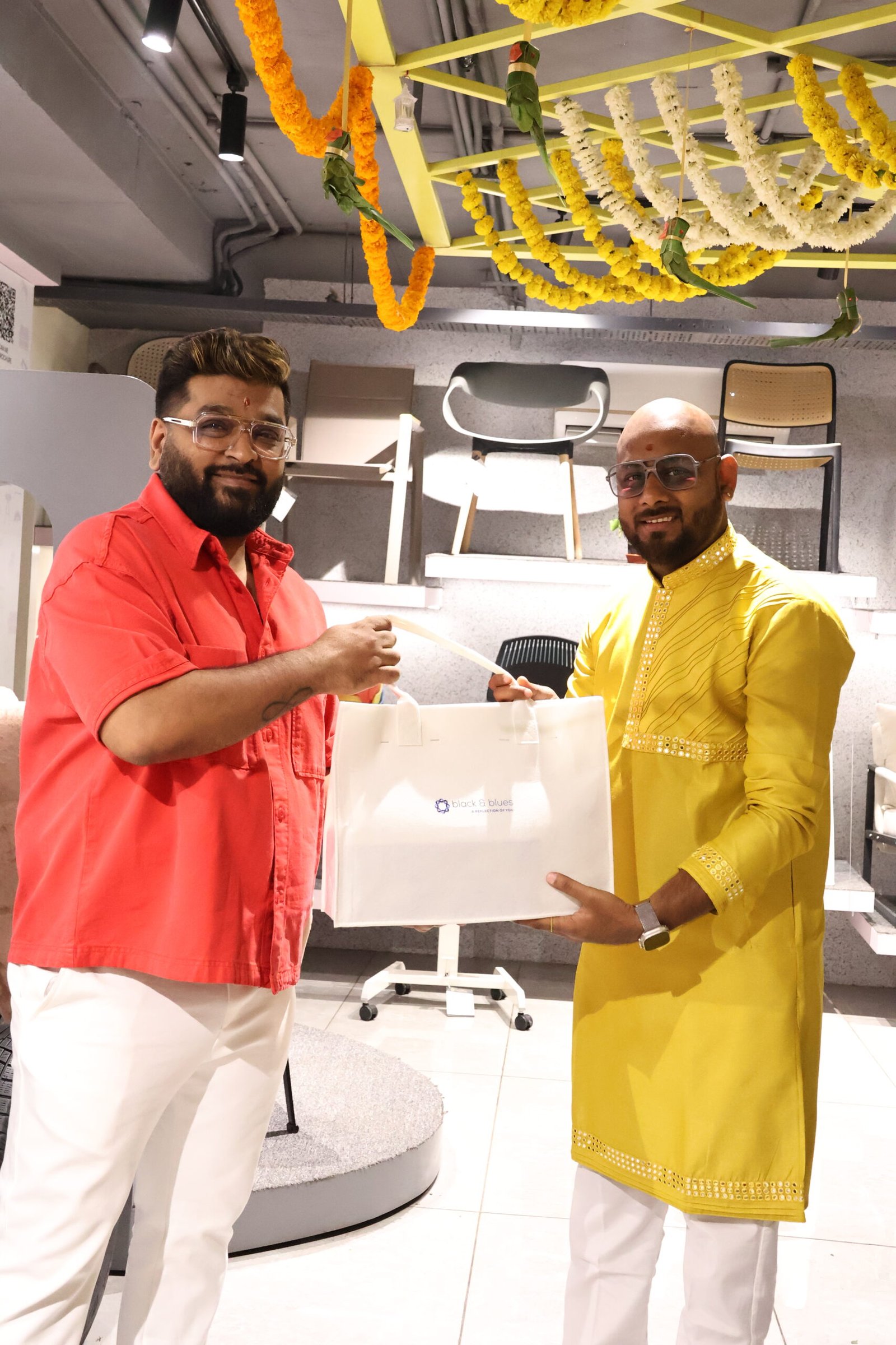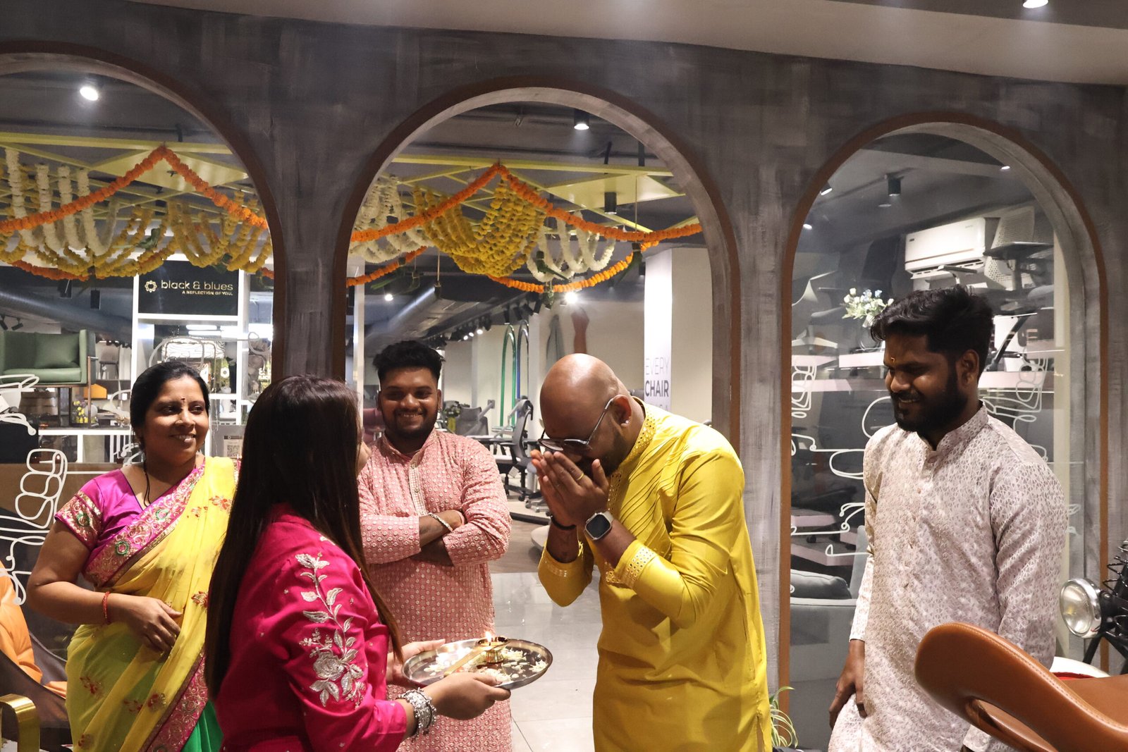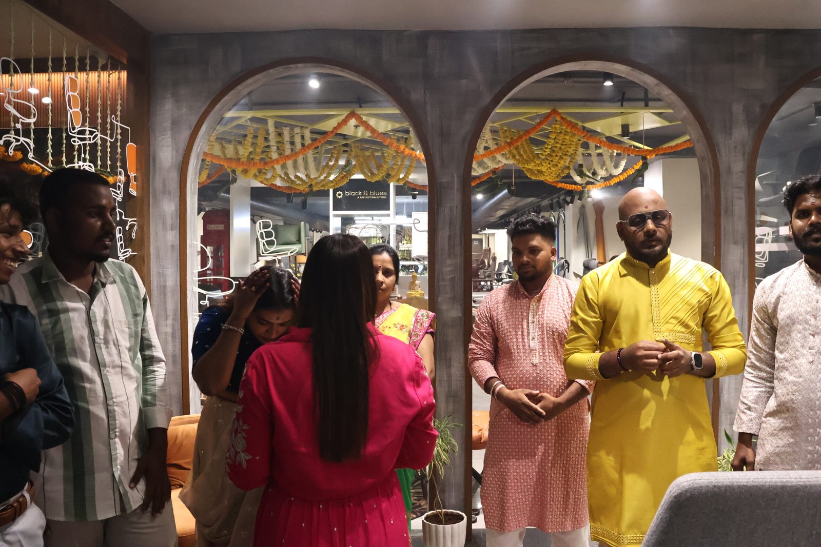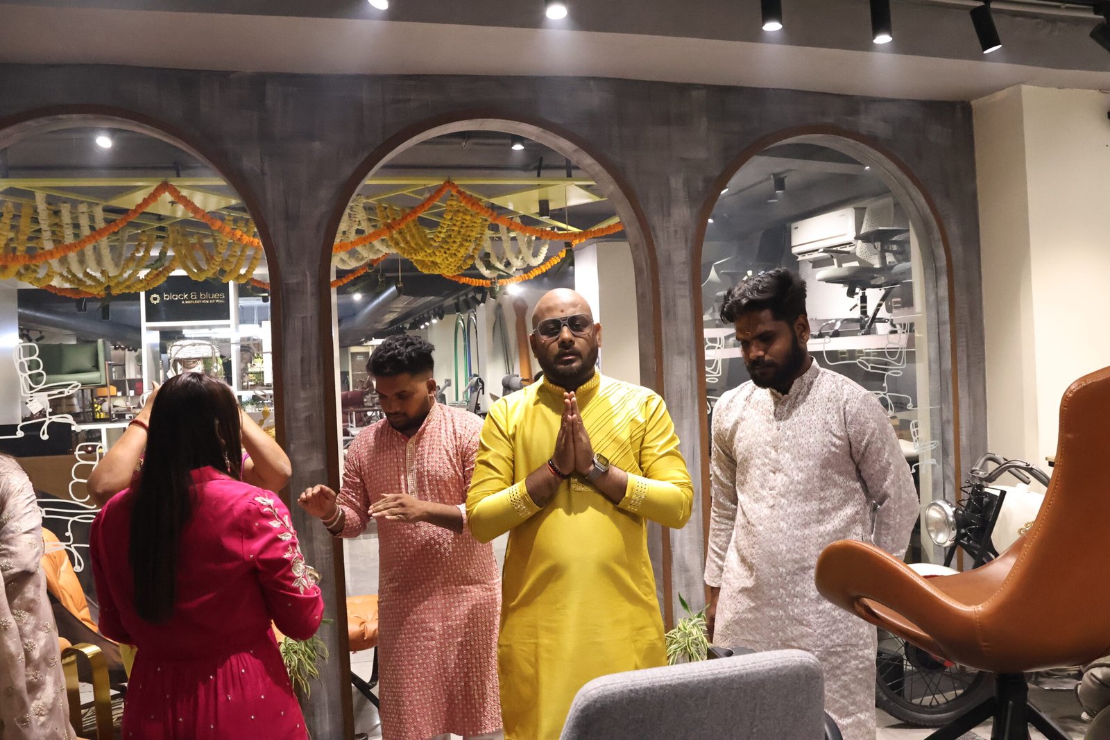 Diwali 2025 at Black and Blues was more about the people than the products. The team got together to decorate the store with diyas, simple floral rangolis, and warm lights, then took a pause from everyday chaos to sit, eat, and laugh together. There were impromptu photo sessions on our own sofas, mithai doing multiple rounds, and a small gratitude huddle where everyone shared what this year meant for them and the brand. No campaigns, no rush—just the Black and Blues family celebrating Diwali under one roof.