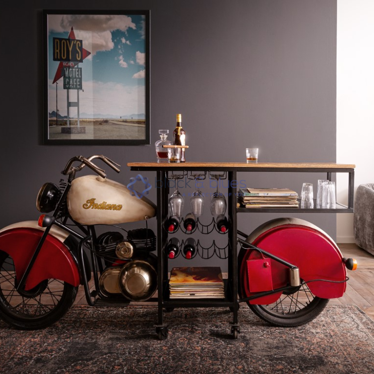 Fuel your love for entertaining with the Motor Cabinet. This motorcycle-inspired bar cabinet injects a touch of vintage flair into your space, ideal for creating a conversation-starting drinks station for casual gatherings or showcasing your prized whiskeys.